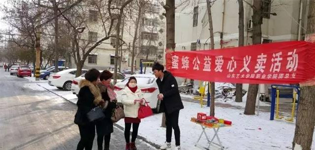 迎来了寒潮,推送了爱心。冰天雪地中,枣庄的小蜜蜂们干劲十足,不惧严寒,在零下10多度的街头依然热情十足义卖我们的爱心笔,他们不舍得放过任何一次机会,积极的向路人介绍我们的公益活动。——枣庄站