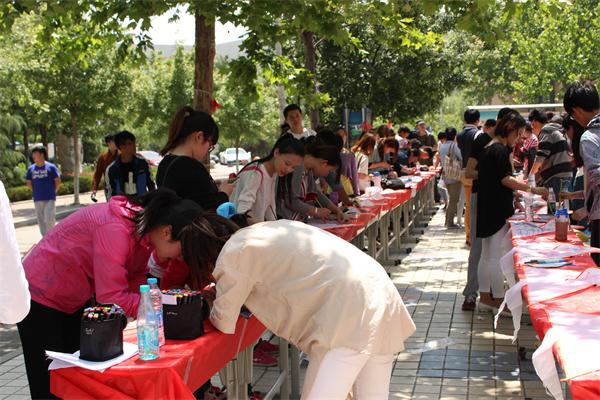 本站讯 由职业学院团总支主办的“激情四月,我们爱春天”之“我们爱涂鸦”创意风筝涂鸦大赛于4月25日在山东艺术学院长清校区食堂门前报名。同学们满怀热情的在报名点咨询。本次比赛为全校同学提供了难得的机会。同学们可以在本次比赛中尽情发挥自己的想象,将自己的创意展现在风筝上,赛后带着属于自己的风筝到操场放飞。