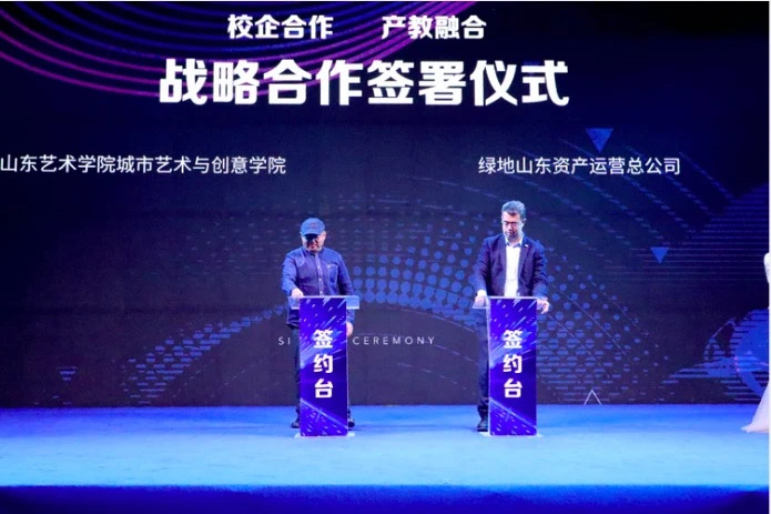 为推进产学研深度融合,城市艺术与创意学院联合绿地山东资产运营总公司,共同举办“全城爱艺”绿地中心星晴市集开市盛典,并签署合作协议。 绿地控股集团山东区域管理总部资产运营总公司副总经理冯立磊,城市艺术与创意学院院长王大海,党总支副书记董莉,办公室负责人张琳,表演系负责人张文文,以及专业老师夏琳琳,凡迪,和部分表演系学生参加了本次活动。