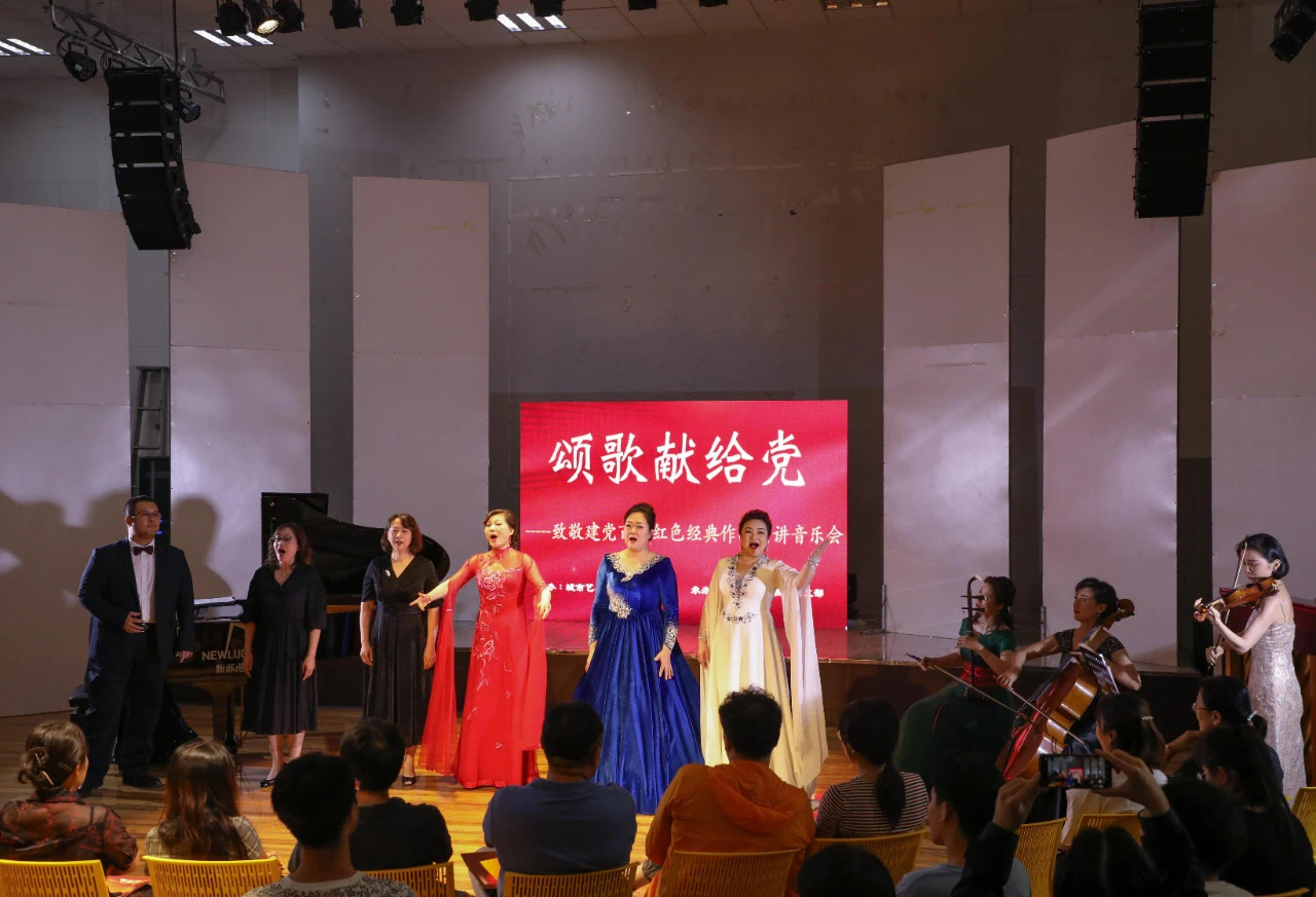 6月24日,城市艺术与创意学院在方盒剧场举办“颂歌献给党-—致敬建党百年红色经典作品”讲演音乐会。后勤党总支、书法学院党总支、财务处党支部、艺术创作与实践处党支部、电影学院学生党支部、城市艺术与创意学院师生一同观看音乐会。