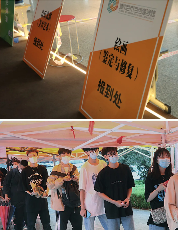 迎新志愿者们带领自己的小分队出发啦。从他们手中接过的行李传递的是师哥师姐的友情,嘴角不由上扬,“你是过去的我,我是未来的你”。从大广场签名报到再到琴房领取军训服,路过食堂到操场录取面部指纹到宿舍领取属于自己的宿舍钥匙,志愿者们耐心地解释报到流程、答疑解惑。