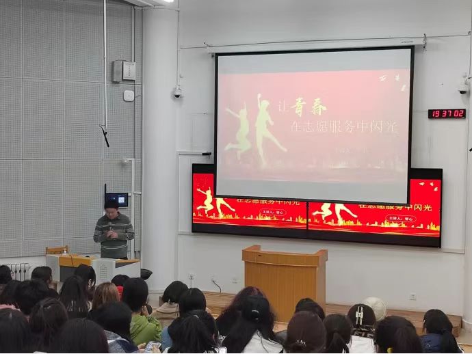 分享会由团总支高晗老师主持,会议伊始,研究生二年级的管心学长向大家分享了他的志愿活动经历。他详细地介绍了参与志愿活动的几条途径:在校内可以关注校团委和学院微信公众号,参加由学校和学院蜜蜂公益志愿服务台组织的暑期“三下乡”社会实践活动,校外假期可以通过当地的一些市团委、县团委等公众号发布的志愿活动信息,选择报名。管心同学细致入微的发言让现场的气氛活跃了起来,让同学们对于社会实践活动有了初步的认识。