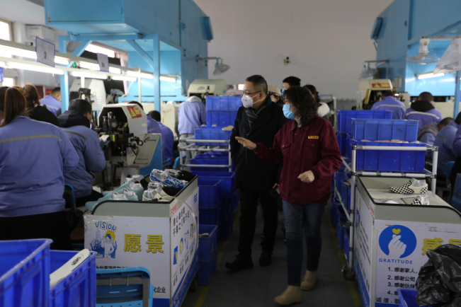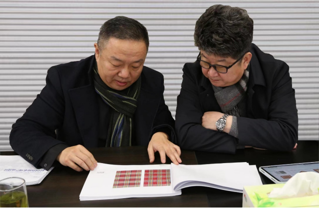 鲁锦研发团队先后到大染坊丝绸集团有限公司、千里行集团有限公司、前丰国际帽艺股份有限公司、山东海思堡服装服饰集团股份有限公司等几家大型企业,了解企业发展的历史和现状,沟通团队设计方案落地和产品打样情况,实地考察了生产流水线和产品类型,并与相关负责人进行了深入交流。在交流中,王大海介绍了省工信厅关于鲁锦产业高质量发展的目标和举措,阐述了对鲁锦进行创造性转化利用和产业创新化发展的构想。以及山东艺术学院自上世纪80年代开始至今,在李百钧等老一辈教授专家的主持下,对鲁锦的工艺总结、文化发掘、设计应用、宣传推广方面进行了持续研究,形成了深厚的学术积累和研发经验。山东艺术学院近40年来在鲁锦文化推广和设计研发方面的历程和经验,形成了“鲁锦研学产一体化”保护性开发的“山艺模式”,被学者赞誉为“一所高校、两代人、三十多年的坚持与守望”。企业方表示,鲁锦作为国家级非物质文化遗产,有深厚的文化底蕴和齐鲁特色,有广泛的应用前景和产业提升空间,有能力有信心在鲁锦产业高质量发展方面做出贡献。双方还对今后产品开发、成立鲁锦产业联盟、举办鲁锦学术研讨会和产品展定会等事宜进行了深入的商讨。通过此次调研考察,了解了产业发展的现状和需求,为鲁锦研发工作打下了坚实的基础,为鲁锦产业高质量发展探讨了有效的发展路径。