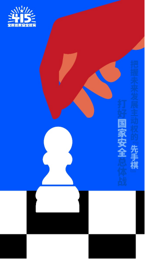 设计说明∶作品运用扁平化的设计手法,表达了祖国在党中央的坚强领导下,打好国家安全总体战,以新安全格局保障新发展格局,把握未来发展主动权“先手棋”的主题。