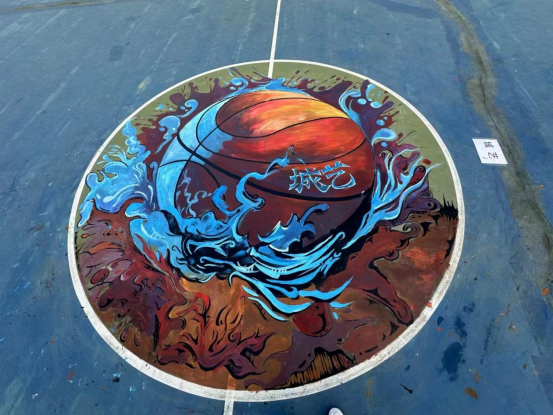 参赛同学以以篮球运动为主题,结合学院特色,进行艺术设计加工,并现场绘制。橙黄的篮球彰显青春活力,天蓝的海浪昭示青春静谧,赤红的火焰凸显少年意气,是城艺学子对艺术的赤诚,也是同学们对篮球运动的赤诚。
