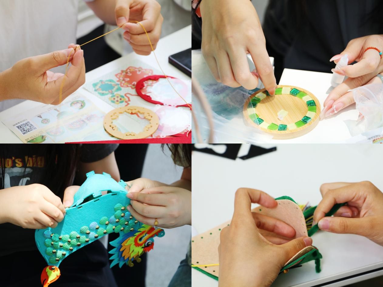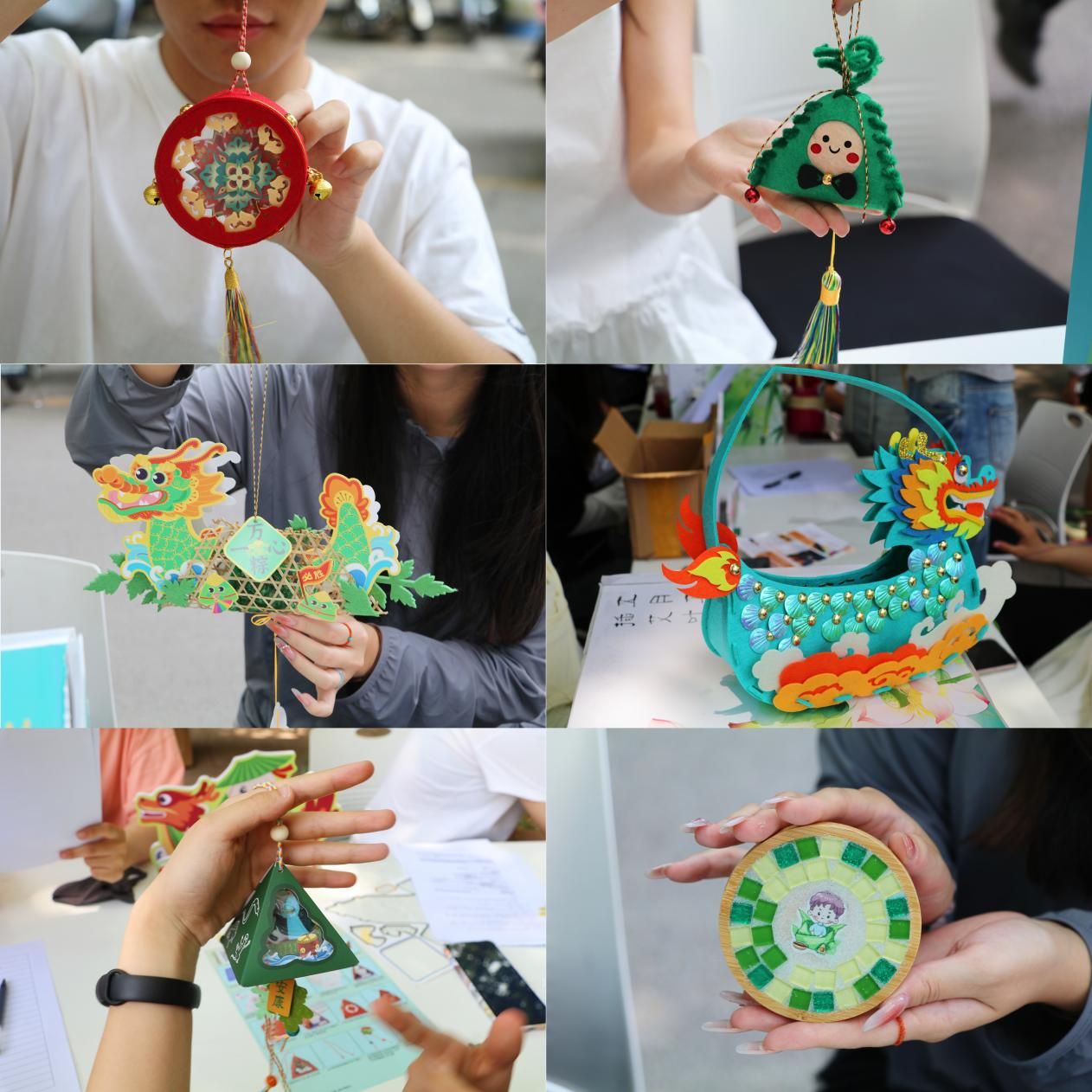 题目内容涉及预防金融诈骗,电信诈骗和不良校园贷、诚信考试、奖助学金政策、服兵役教育资助、大学生国家贷款还款等相关内容,只要答对3题,就可以领取一份端午节手作DIY材料包。同学们纷纷围上来答题,答对3题的立刻开心地拆开包装,开始制作,并纷纷展示自己最后的作品。