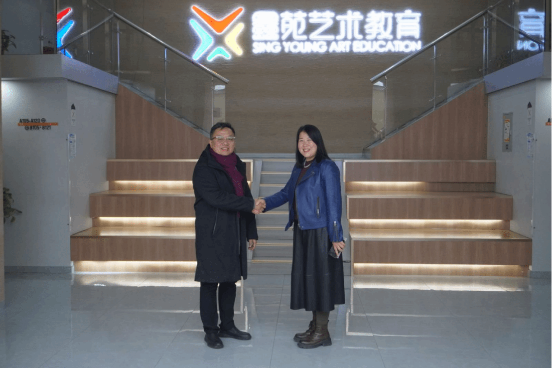 1月17日下午,城市艺术与创意学院院长王大海、党总支书记万慧带领教科研主任和美育音乐系骨干教师团队等一行人,来到鑫苑艺术培训学校山艺校区,开展以“产教融合 协同育人”为主题的交流调研,旨在深化校企合作,促进产教深度融合,共同探索艺术教育与产业需求相结合的新路径。