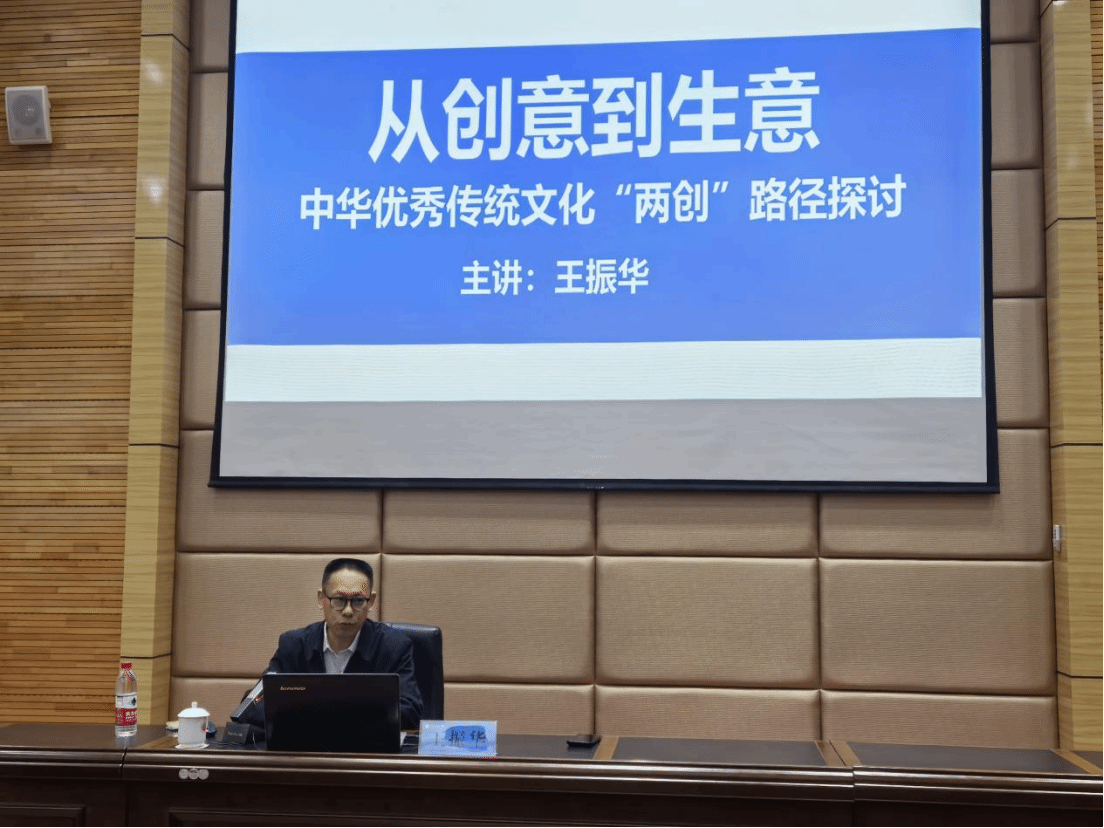 随后,王振华老师指出文化产业的内涵,就是把文化做成产品,让产品更有文化。同时指出了创意到生意的“三种思维”:用户思维,创作产品时需要站在用户的角度上考虑;整合思维,将可用的资源整合起来,为自己所用;创新思维,创新出用户相信的创业产品,打造出用户需要的产品。随即又提出了创意到生意的“四个圈”:政策圈,分析政策,借政策之风,促进创业发展;专家圈,结识广大人脉,借用人脉推动发展;传媒圈,宣传创业产品,提升知名度;生态圈,将创业产品与生态资源结合起来,两者一起实现长期发展。