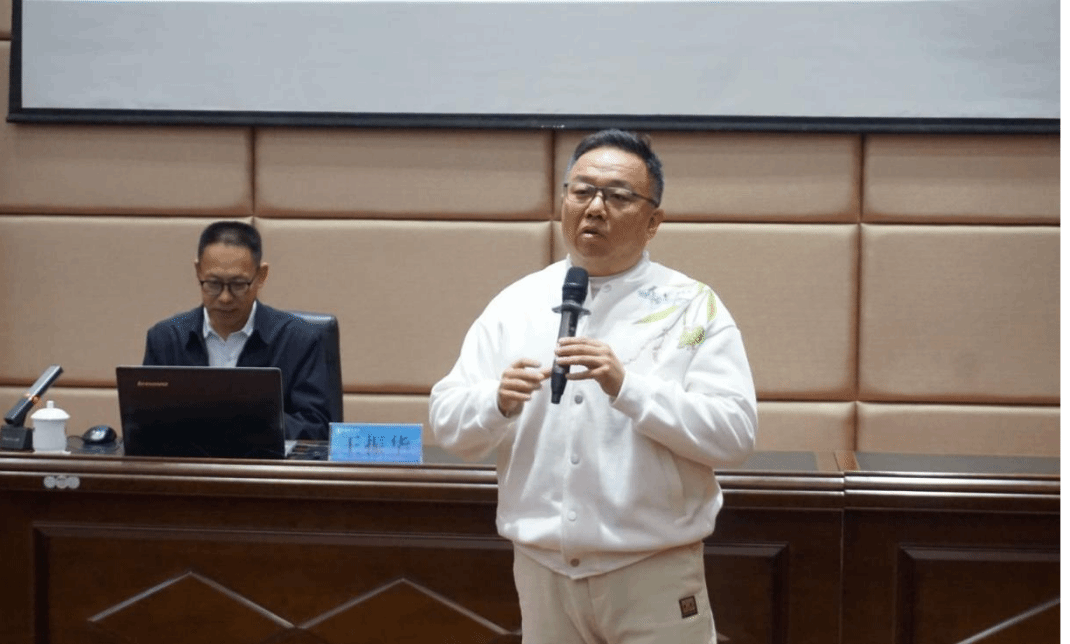 为启发学生创新思维,助推创业梦想,3月31日19点30分,城市艺术与创意学院于办公楼二楼报告厅举办就业创业大讲堂系列活动。本次活动邀请到了文化和旅游部优秀专家、泰山产业领军人才、山东省动漫行业协会会长、世博华创集团董事长王振华先生为主讲人,发表以《从创业到生意—中华优秀传统文化“两创”途径》为主题的演讲。