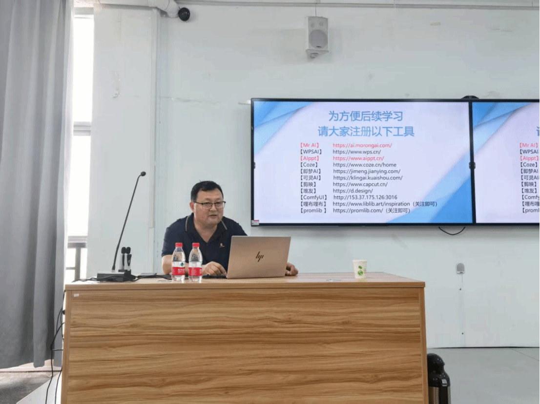 讲座由现任校园安全智慧大脑山东省工程研究中心副主任,同时担任济南亚爱特技术总监的李纪阳老师担任主讲。李纪阳老师在人工智能与教育领域深耕多年,对各类AI软件有着深入的研究与实践经验。培训伊始,李老师深入浅出地介绍了ChatGPT和DeepSeek的功能特点,让师生们对这两款软件有了全面的认识。他指出,ChatGPT强大的自然语言处理能力能够辅助文案创作、知识查询等,而DeepSeek在图像生成、智能绘画等方面表现卓越,对艺术设计领域的师生具有极高的应用价值。