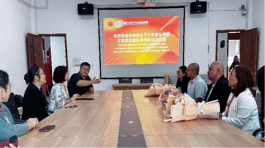 2025年4月22日,城市艺术与创意学院迎来了建院25周年教育教学系列活动——国际学术交流会。此次活动特邀菲律宾女子大学音乐学院院长、博士生导师及其团队三位教授前来我院交流,深入探讨菲律宾传统音乐与流行音乐的特色。