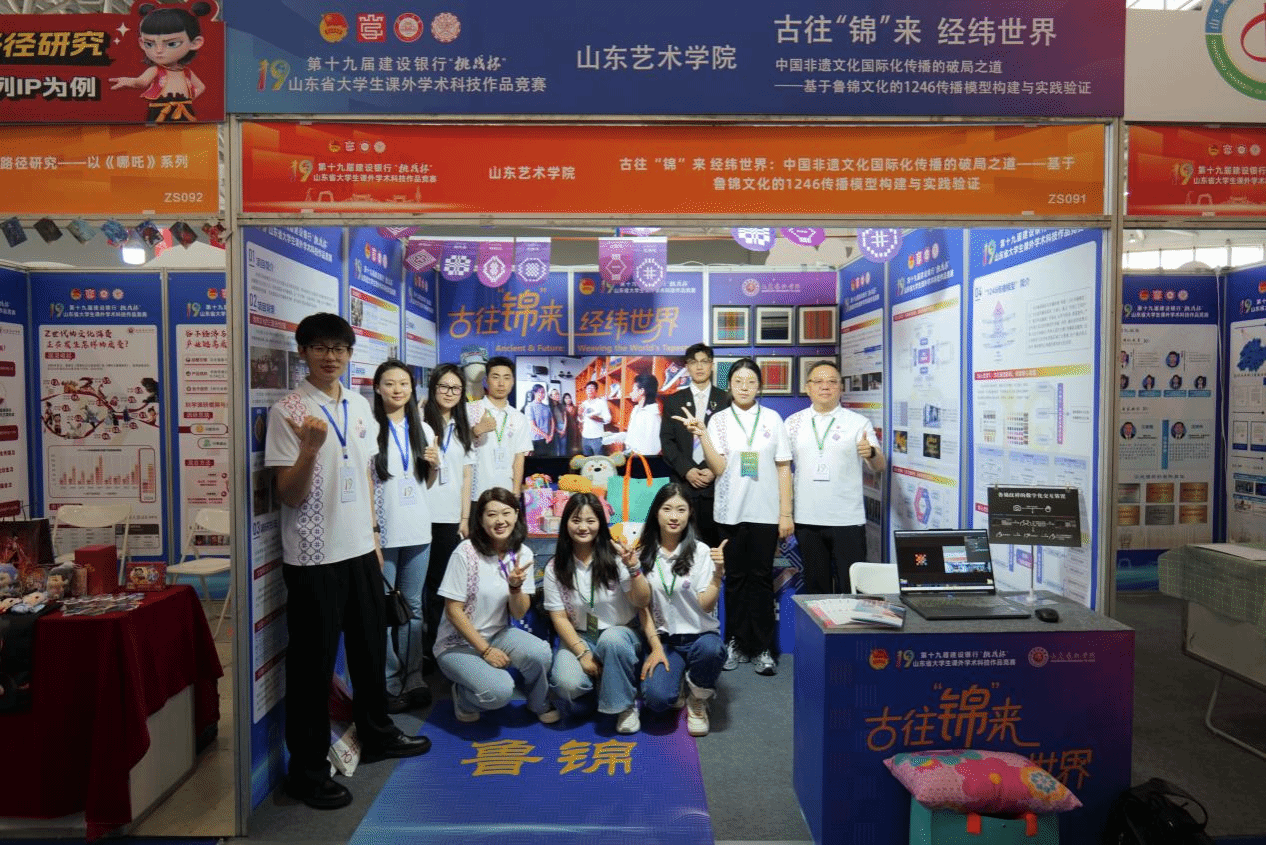 6月4日至6日,第十九届建设银行 “挑战杯” 山东省大学生课外学术科技作品竞赛(普通高校组)终审决赛在临沂大学圆满收官。城市艺术与创意学院联合设计学院师生团队凭借《古往 “锦” 来,经纬世界:中国非遗文化国际化传播的破局之道 —— 基于鲁锦文化的 1246 传播模型构建与实践验证》项目,以卓越的学术深度、创新实践成果斩获省赛特等奖,展现山艺学子在非遗传承与学术创新领域的硬核实力。