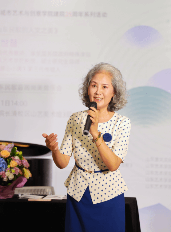 在致辞中,彭丽强调,中国民歌历史源远流长,是先民智慧与情感的生动写照。她指出,山东民歌字里行间浸润着齐鲁大地的雄浑山韵,经当代艺术家的创新改编,更被赋予了时代新内涵与情感温度。她从理论的高度阐释了山东民歌的历史发展脉络,回顾山艺民族唱法融合民间传统与科学发声的创新历程,致敬王世慧教授等前辈为山东民歌传承与发展做出的巨大贡献,寄语青年学子一定要传唱民歌经典。