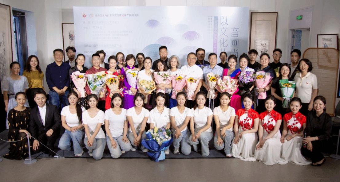 6 月 11 日,山东艺术学院城市艺术与创意学院联合山艺美术馆于长清校区美术馆举办 “以文化艺・音画尚美” 山东民歌传承讲堂暨经典作品音乐会,以建院 25 周年为契机,奏响齐鲁文化传承强音。山东艺术学院副院长彭丽、齐鲁工业大学体育与音乐学院副院长严可、济南市长清区大学城实验学校校长张绪儒、山艺各职能部门和二级学院负责同志、长清一中专家学者、艺术家及师生齐聚一堂,共赴这场文化盛宴。 活动由城市艺术与创意学院党总支书记万慧主持。