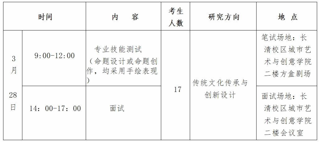 注:复试时需提交个人作品 5件(套) 及各类获奖证书,如发现非本人作品,成绩无效