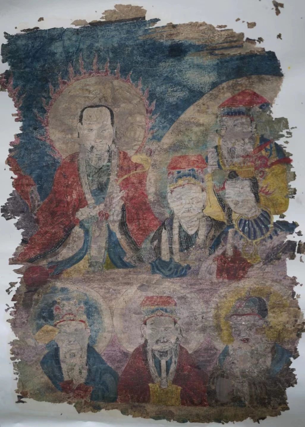 作品简介:水陆画是中华民族的文化瑰宝,它展现了一个时期的艺术特色和社会生活,具有极高的艺术价值和文化价值。而对破损的水陆画进行全色、接笔的修复,可以保留其历史价值和文化内涵。全色和接笔则是传统书画修复中最重要的一个环节,它可以使画面尽量达到修复对象原本的艺术效果,使作者的精彩作品得以重新展现在世人面前,代代流传。