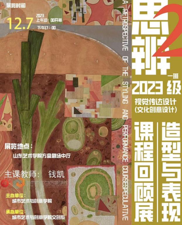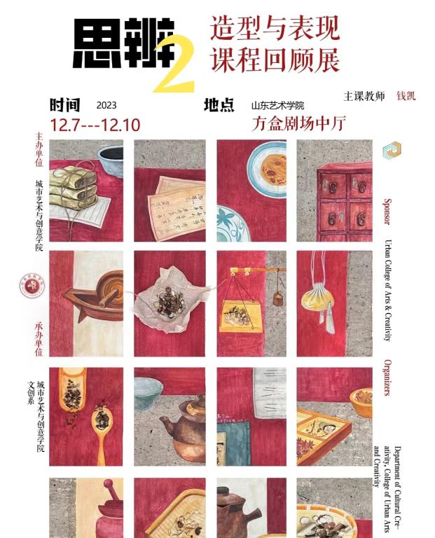 2023年12月7日—10日城市艺术与创意学院视觉传达设计(文化创意设计)2023级一班“思辨2”——《造型与表现》课程回顾展在山东艺术学院方盒剧场中厅顺利举办。此次展览呈现了城艺学院钱凯老师主讲的《造型与表现》设计基础课程的成果,展出了23级文创一班19位同学在课程中精彩创作的19幅作品。
