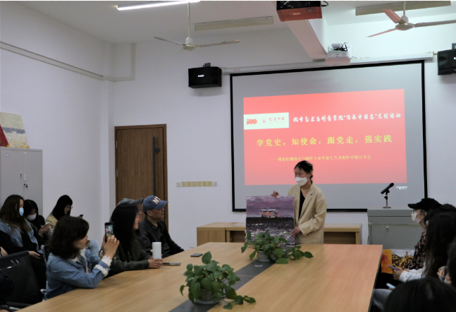 “党的历史是最生动、最有说服力的教科书。” 为庆祝中国共产党成立100周年,结合党史学习教育重大决策部署,根据学校“艺·美中国”活动方案安排,以“礼•艺工作站”为依托,4月6日下午,城市艺术与创意学院开展“传承中国志”系列活动第一场,“学党史,知使命,跟党走,强实践”,视觉传播设计与制作专业毕业生艺术创作中期分享会。党总支书记孙学东,院长王大海,设计系主任唐玮,专业教师钱凯、杨占杰,团总支老师参加活动。 活动由党总支副书记董莉主持。她说道,今年是中国共产党成立100周年,也是“十四五”开局之年,党中央决策部署开展党史学习教育正当其时,十分必要。结合党史学习教育,我们选择党的历史上重大历史事件为题材进行艺术创作,就是希望同学们能重温这部伟大历史,能够在艺术创作过程中受到党的初心使命、性质宗旨、理想信念的生动教育,能够铭记光辉历史、传承红色基因。