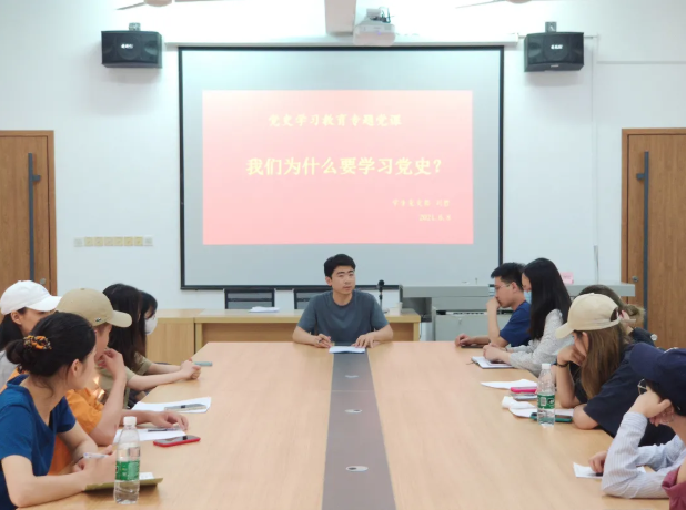 根据学校党史学习教育方案和党总支的安排,6月8日,学生党支部在学院二楼会议室进行党史学习,学生党支部书记以《我们为什么要学习党史?》为题给大家讲党课,党员、党员发展对象、入党积极分子50余人参加。