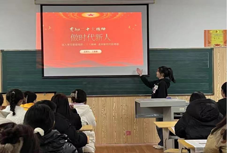 学院各班级团支部,以团支部书记讲团课的形式,运用鲜活的语言,带领团员一起学习党的二十大报告和习近平总书记重要讲话精神。教育引导广大团员青年深刻领悟“两个确立”的决定性意义,不断增强“四个意识”、坚定“四个自信”、做到“两个维护”。