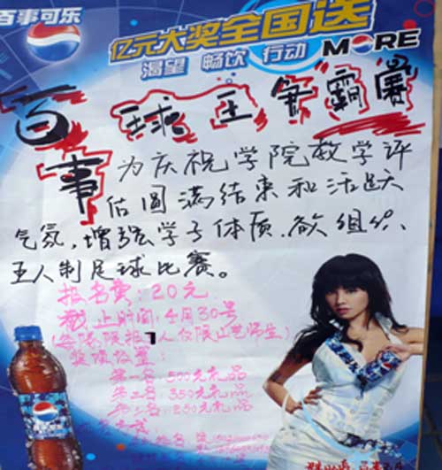 (二)奖项设置:冠军一队 价值500元的百事礼品