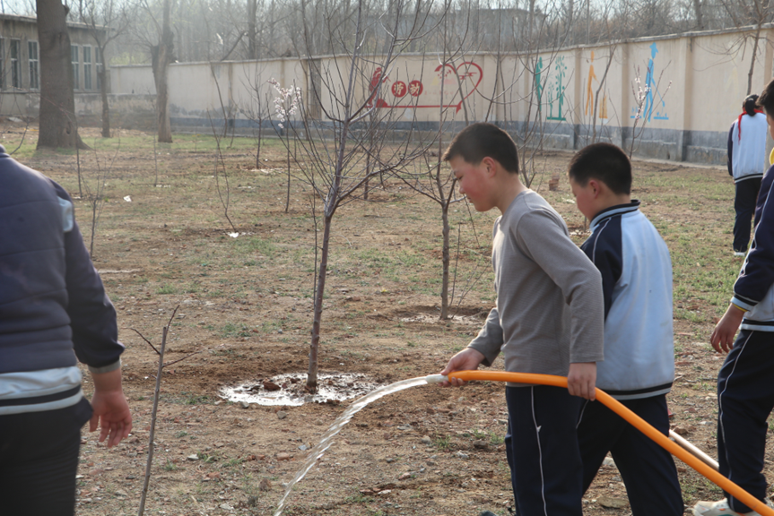 活动中,志愿者和石胡同小学的学生们一同挖土、栽苗、埋土、浇灌……在他们俯下的身躯上,荡漾着青春的朝气和劳动的快乐;在他们小心翼翼埋下树苗的动作中,充斥着责任和认真的奉献态度;在他们浇灌好幼小的树苗,不由得相视一笑的时候,眼眸中激荡的,是志愿服务的满足和无限的期待。