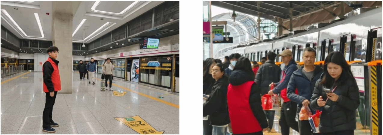 服务期间,志愿者们严格遵守规则,积极配合地铁站工作人员,认真完成每一项任务。他们忙碌的红色身影穿梭在人群中,像一束束温暖的火苗,为地铁站增添了活力与温度。无论是耐心解答乘客的疑问,还是细心帮助行动不便的旅客,他们都用实际行动传递着爱心与关怀。同时,志愿者们也在服务他人的过程中收获了快乐与成长,不仅提升了沟通能力和应变能力,更深刻体会到了奉献的意义和价值。