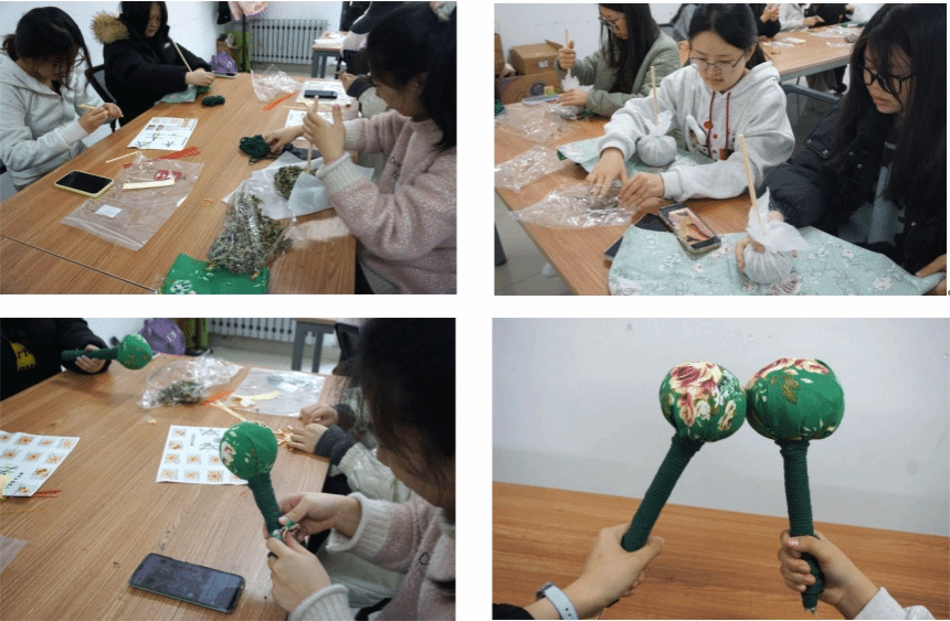 艾草按摩锤制作区,艾草独特的香气弥漫开来。女生们将晾干的艾草填充进布袋,再用棉线紧密缠绕,固定形状。经过一番努力,一个个实用又充满创意的艾草按摩锤呈现在眼前。锤身饱满,敲击起来力度适中,无论是工作之余放松肌肉,还是居家养生,都十分合适。