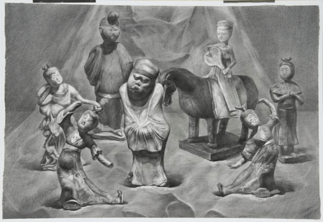 素描是绘画的基本功,它训练我们对物体的理解和表现能力。素描不仅是关于形状和线条的艺术,更是关于光线和阴影的艺术。本次文物造型基础课,不仅提高了我的绘画技术,更使我通过绘画讲了一个很长很长的不夜大唐的故事。无论是体态优美的唐代仕女俑,还是具有独特魅力的骆驼载乐俑,都展现出了唐代经济繁荣,社会风气开放的景象。纹饰华丽的菱花镜和烛台,表面纹饰自然婉转,内部却暗藏玄机的香囊和具有吉祥寓意的双鱼瓶都展现了唐代工匠高超的技术和灵巧的心思。在本次课程中,我进一步的看到唐三彩上华丽又自然的色彩,精密真实的纹路,又了解到唐三彩复杂的制作过程,在寻找素材时也掌握了不少文物的具体信息,使我大有收获。在之后的课程中,我将会巧妙运用本次课程所学,以便学习到更多知识。