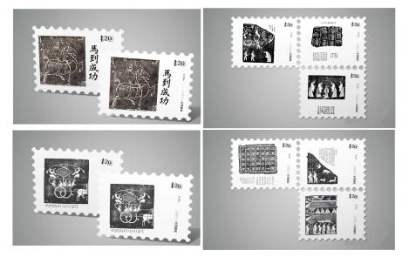 画面采用了大特写构图,可以充分的衬托出孝堂山汉画像石拓印的主题形象,使用其他邮票的辅助设计元素更好的带出主题。既保留了拓印特有的质感,黑白对比色强烈在画面中具有强烈冲击感,能够吸引广大受众群体的注意力。于洁