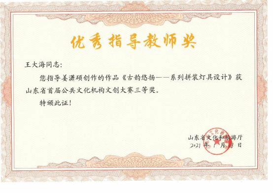 获奖项目8:山东省首届公共文化机构文创大赛优秀指导教师奖